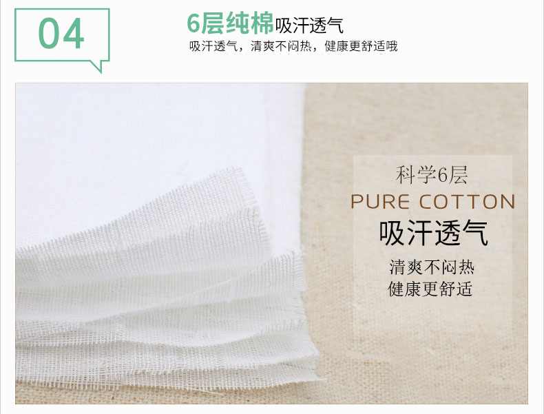 【不满意无条件退换】精选6层纯棉细腻纱布,柔软亲肤,迅速吸汗,无荧光剂,透气性好。精致包边耐洗耐用不变形。多种清新图案可供选择。给家人给自己更多干爽就选它!