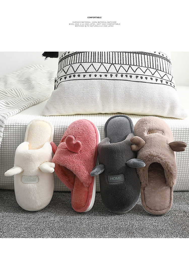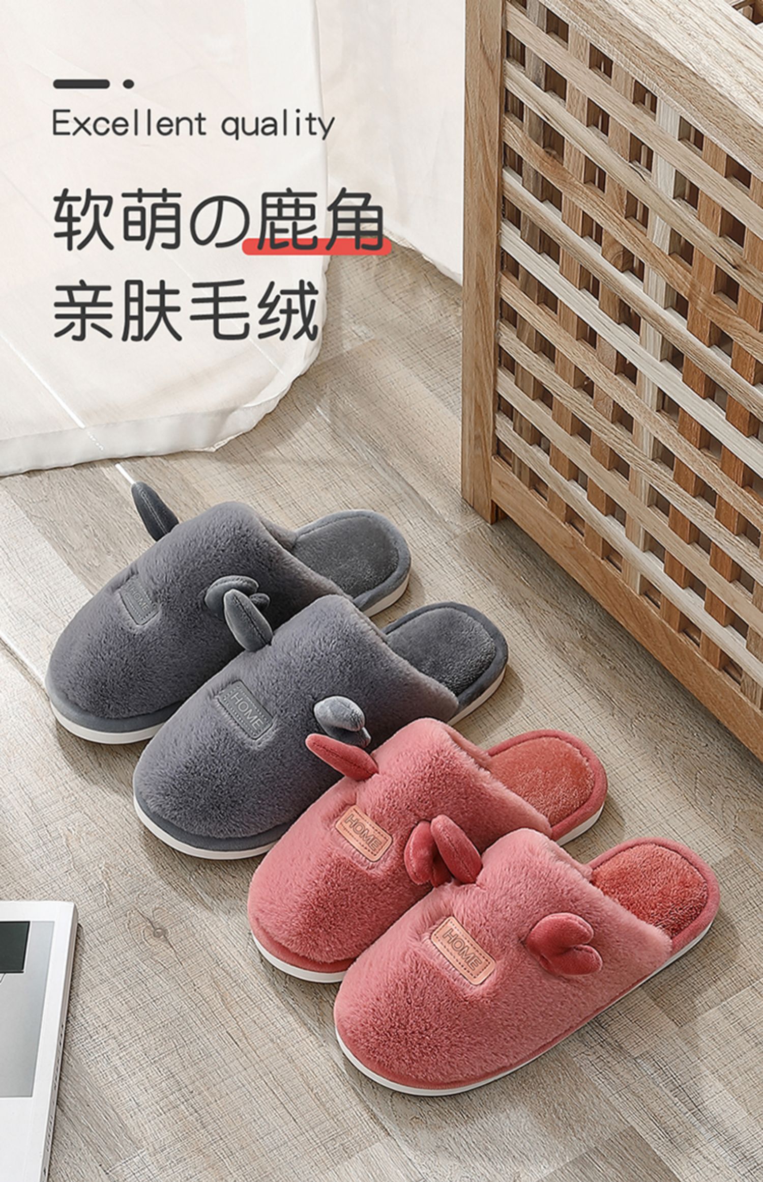 【安尚芬精选】情侣居家保暖加厚棉拖鞋,加厚长毛绒+呆萌鹿角设计,高强防滑鞋底,不易磨损,舒适保暖易清洗,无异味,多色可选!好看就算了,还那么厚实,现在不买,旺季被宰~~