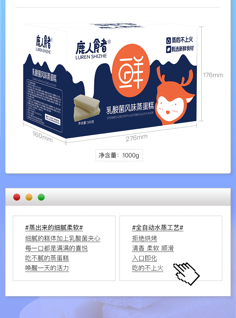 【鹿人食者】乳酸菌夹心面包800g,一箱28条乳酸菌蒸蛋糕一整箱只要,16.8元!!!浓浓的奶香味,细腻香甜!一口一个不上火!乳酸菌蒸蛋糕,大人小孩都爱吃~【赠运费险】